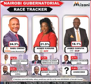 The Nairobi governor race appears competitive, with several candidates, including Kagure, in a strong position as they work to win over more voters.