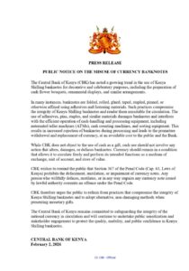 The statement went on, “While CBK does not object to the use of cash as a gift, such use should not involve any action that alters, damages, or defaces banknotes. Currency should remain in a condition that allows it to circulate freely and perform its intended functions as a medium of exchange, unit of account, and store of value.”