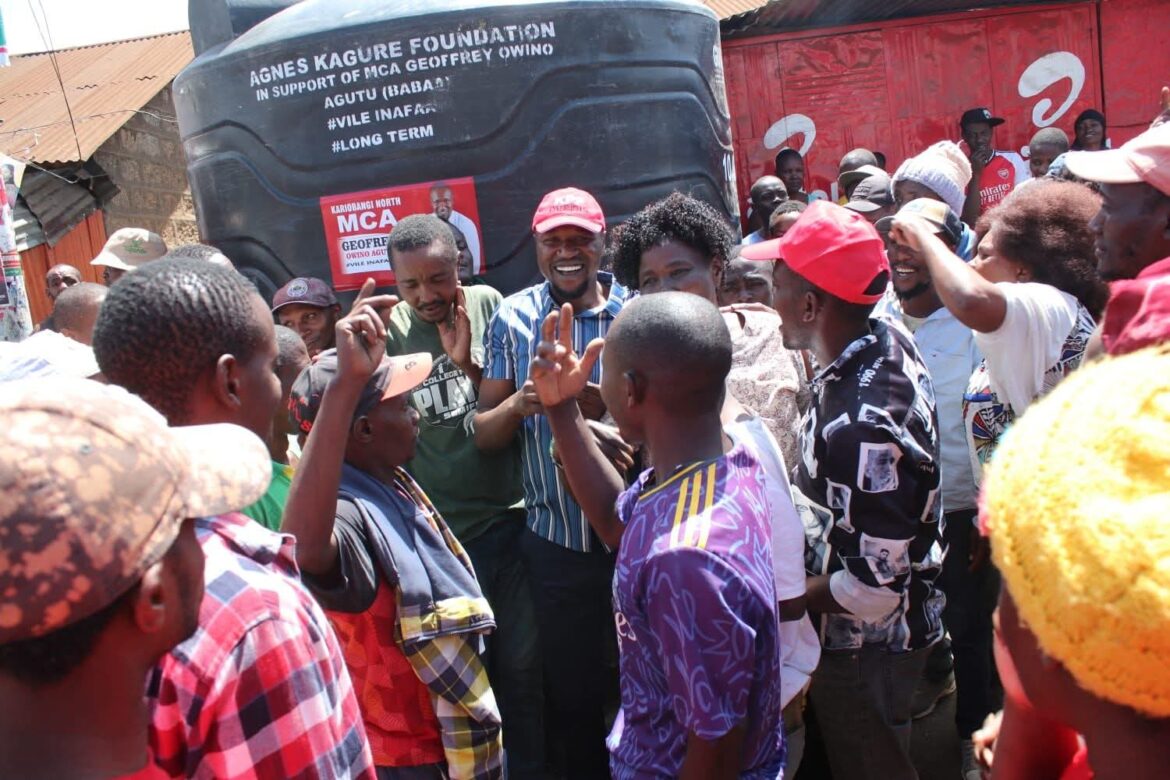 Geoffrey Agutu wins hearts in Kariobangi North with water tank delivery