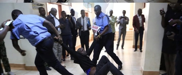 Security officers later confirmed that Kamau did not resist physically during the removal. However, he continued to voice his objections even as he was being led out, which they said made police intervention necessary to ensure the hearings could continue.