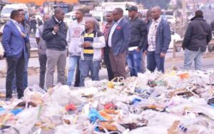 Nairobi Governor Johnson Sakaja and the section of county officials during the past visit to one of the dumping sites in Nairobi. Photo Courtesy/The Standard