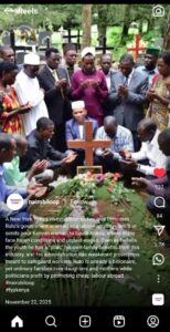 Another troubling feature is the emotional image chosen for the post. The picture shows grieving people at a gravesite, with strong symbols of loss and suffering.