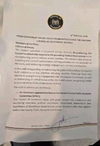Despite the growing tension, the Council of Governors insisted it remains committed to accountability and the proper use of public resources. It emphasized that oversight must be lawful, ethical, and free from abuse of office.